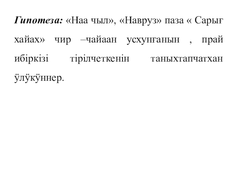 Слайд 3Гипотеза: «Наа чыл», «Навруз» паза « Сарығ хайах» чир –чайаан усхунғанын