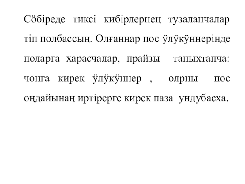 Слайд 10Сӧбiреде тиксi кибiрлернеӊ тузаланчалар тiп полбассыӊ. Олғаннар пос ӱлӱкӱннерiнде поларға харасчалар,