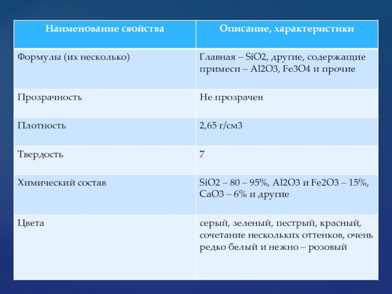 в основном кварцем, халцедоном и пигментированными примесями других минералов (эпидот, актинолит, хлорит, слюда, пирит, окислы и гидроокислы железа и марганца), полудрагоценный поделочный камень. Обычно имеет осадочное (иногда вулканогенное) происхождение.