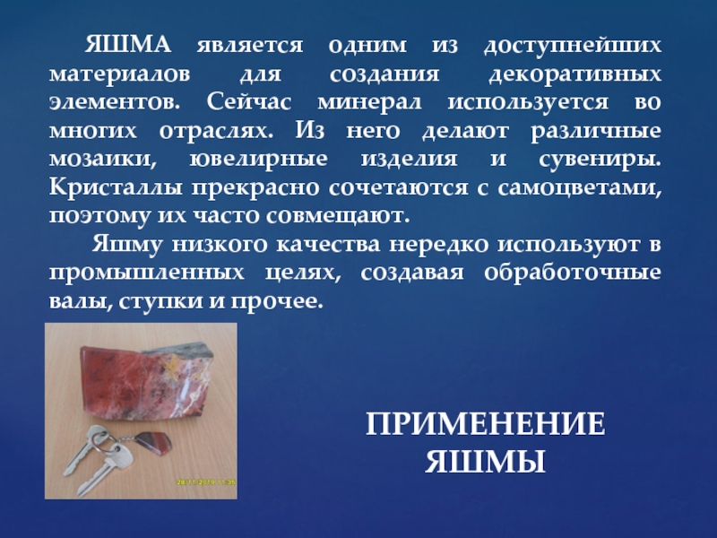 Слайд 14ПРИМЕНЕНИЕ ЯШМЫ