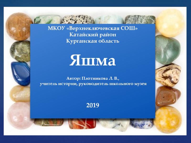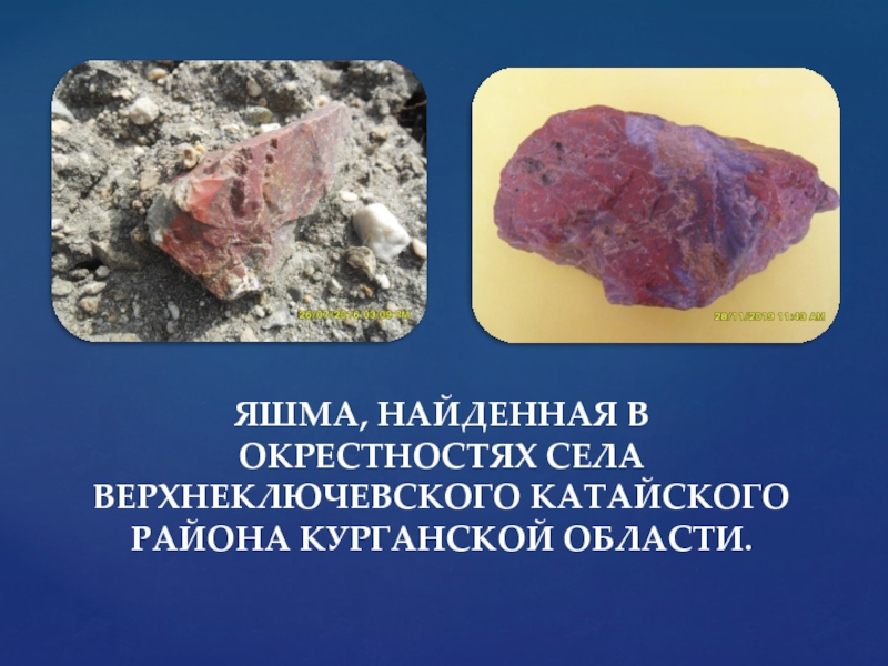 Слайд 12ЯШМА, НАЙДЕННАЯ В ОКРЕСТНОСТЯХ СЕЛА ВЕРХНЕКЛЮЧЕВСКОГО КАТАЙСКОГО РАЙОНА КУРГАНСКОЙ ОБЛАСТИ.