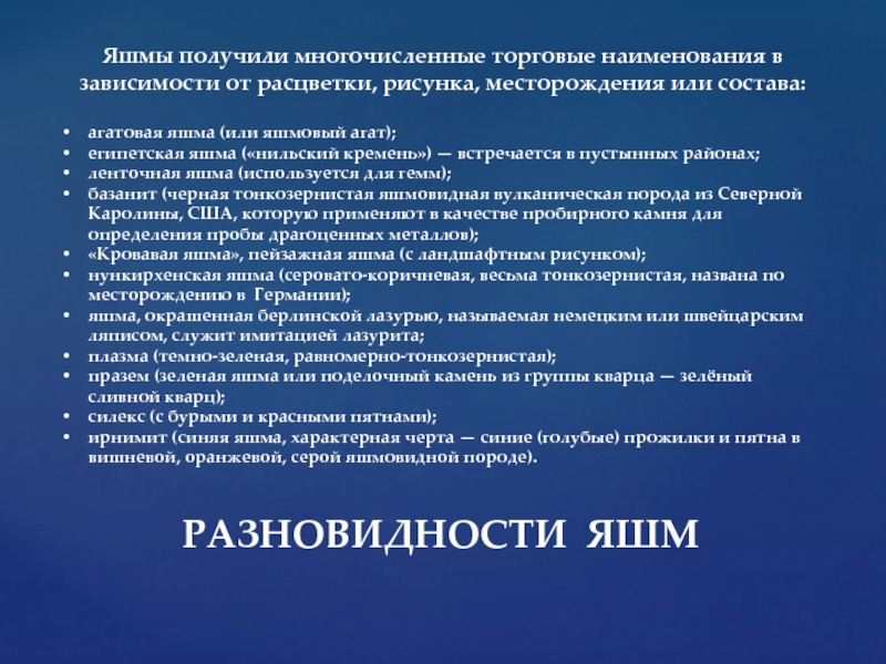 Слайд 11РАЗНОВИДНОСТИ ЯШМ