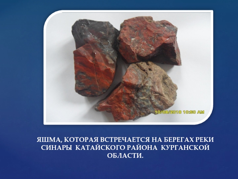 Слайд 10ЯШМА, КОТОРАЯ ВСТРЕЧАЕТСЯ НА БЕРЕГАХ РЕКИ СИНАРЫ КАТАЙСКОГО РАЙОНА КУРГАНСКОЙ ОБЛАСТИ.