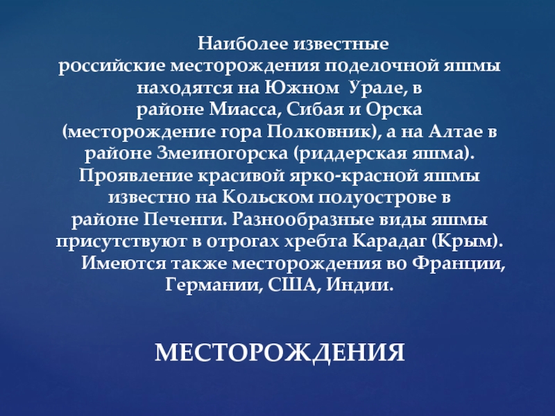 Слайд 7МЕСТОРОЖДЕНИЯ