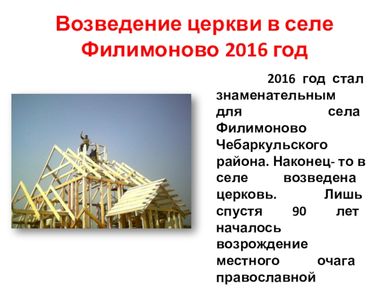 Слайд 2Возведение церкви в селе Филимоново 2016 год