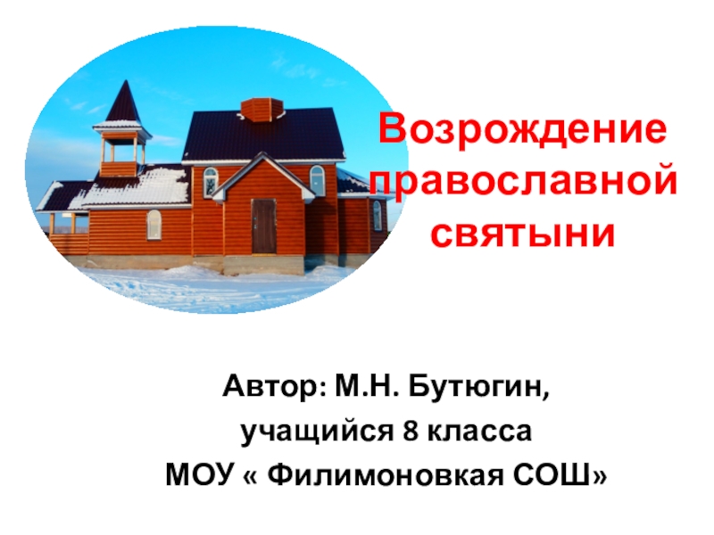 Возрождение православной святыни Автор: М.Н. Бутюгин, учащийся 8 классаМОУ « Филимоновкая СОШ»