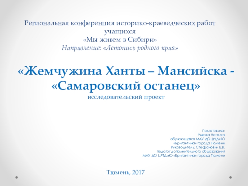 «Жемчужина Ханты – Мансийска - «Самаровский останец»