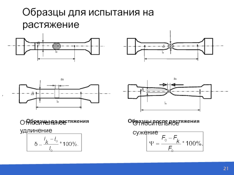 Слайд 21Образцы для испытания на растяжение