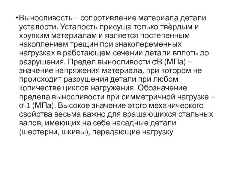 Слайд 23Выносливость – сопротивление материала детали усталости. Усталость присуща только твѐрдым и