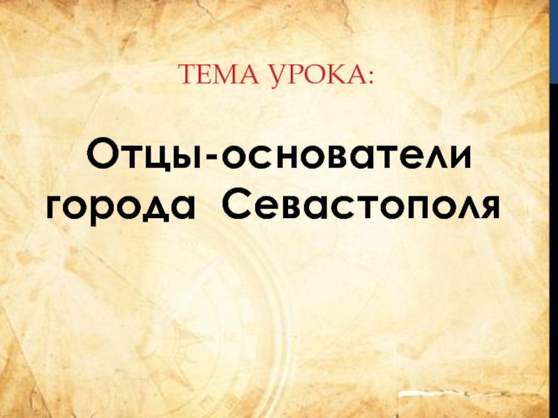 Тема урока: Отцы-основатели города Севастополя