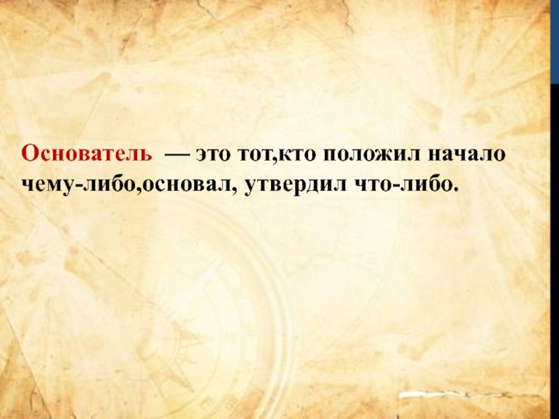 Слайд 4Основатель  — это тот,кто положил начало чему-либо,основал, утвердил что-либо.