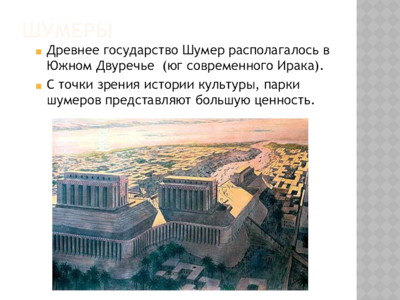 зрения истории культуры, парки шумеров представляют большую ценность.