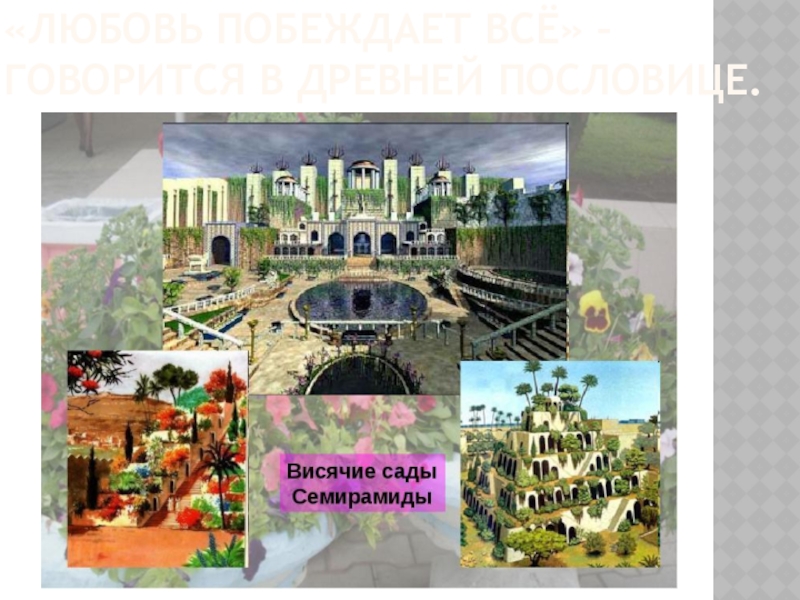 Слайд 20Висячие сады семирамиды – уникальное произведение вавилонян и ассирийцев