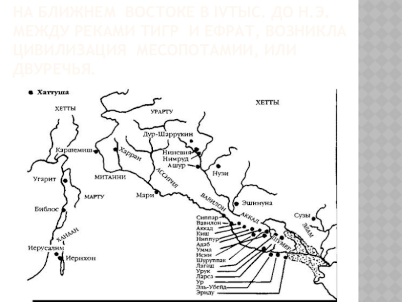 Слайд 16На Ближнем Востоке в IVтыс. до н.э. между реками Тигр и