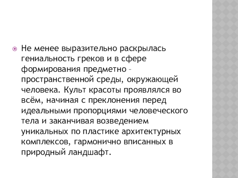Слайд 50Не менее выразительно раскрылась гениальность греков и в сфере формирования предметно