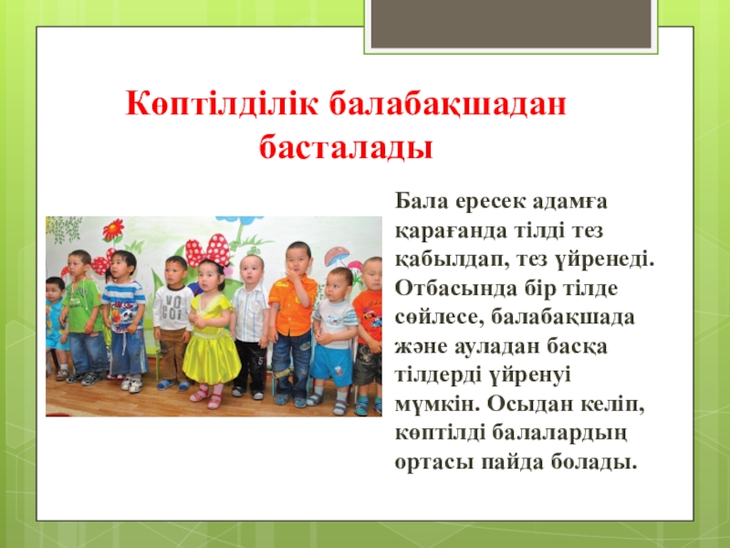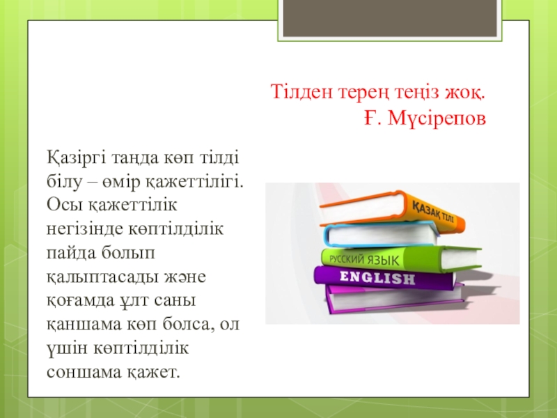 Қазіргі таңда көп тілді білу – өмір қажеттілігі. Осы қажеттілік негізінде көптілділік пайда болып қалыптасады және қоғамда ұлт саны қаншама көп болса, ол үшін көптілділік соншама қажет.