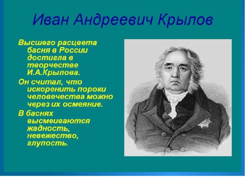 Презентация, доклад по литературе К 250- летию И.А. Крылова