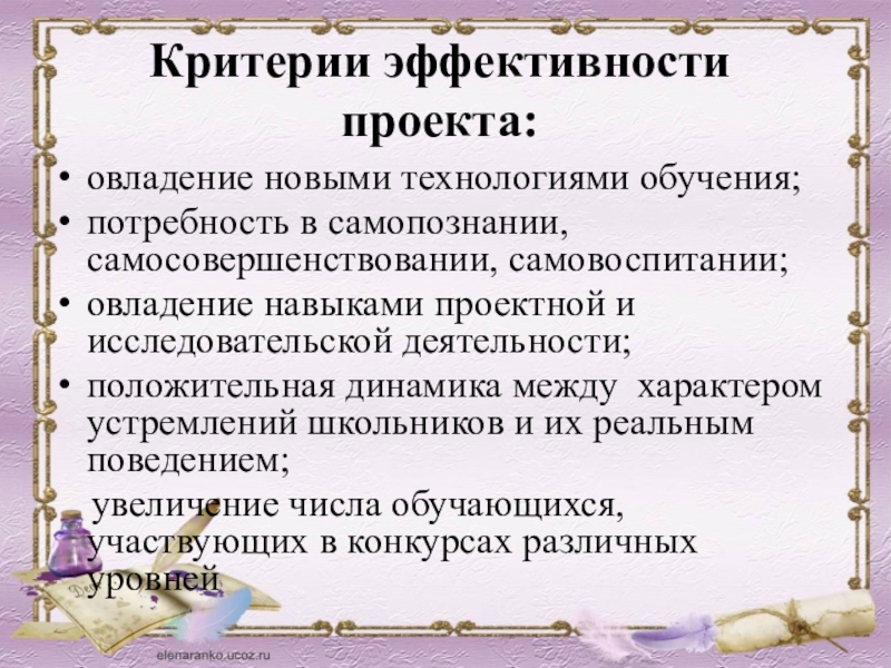 Слайд 7Критерии эффективности проекта: