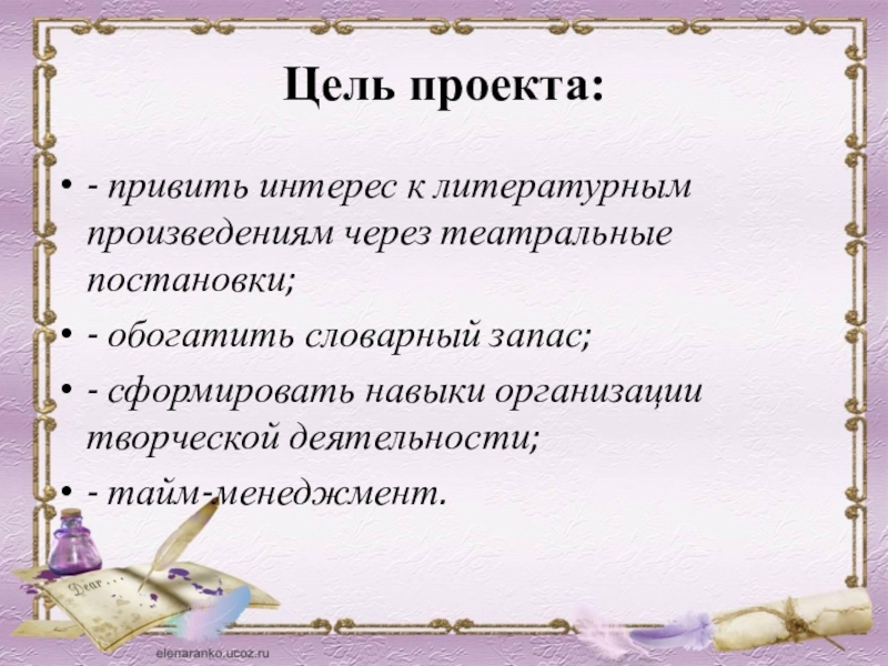 - привить интерес к литературным произведениям через театральные постановки;