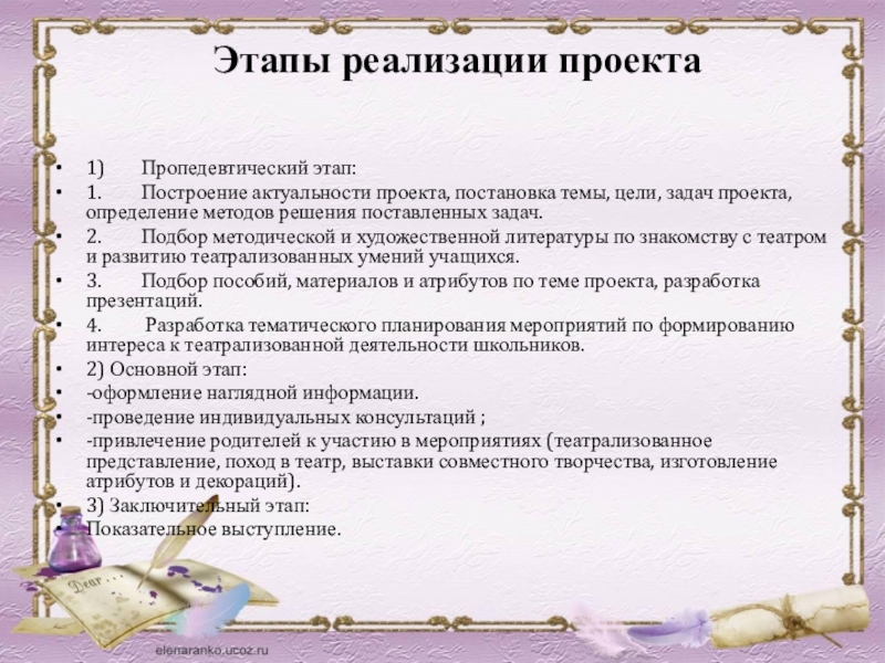 Этапы реализации проекта