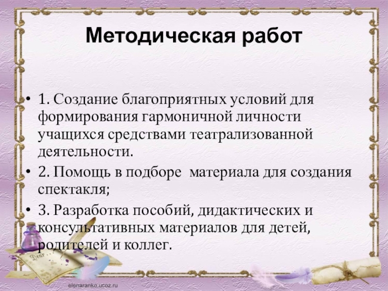 2. Помощь в подборе материала для создания спектакля;