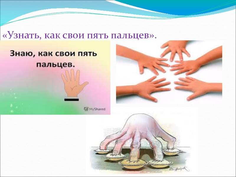 Слайд 13«Узнать, как свои пять пальцев».