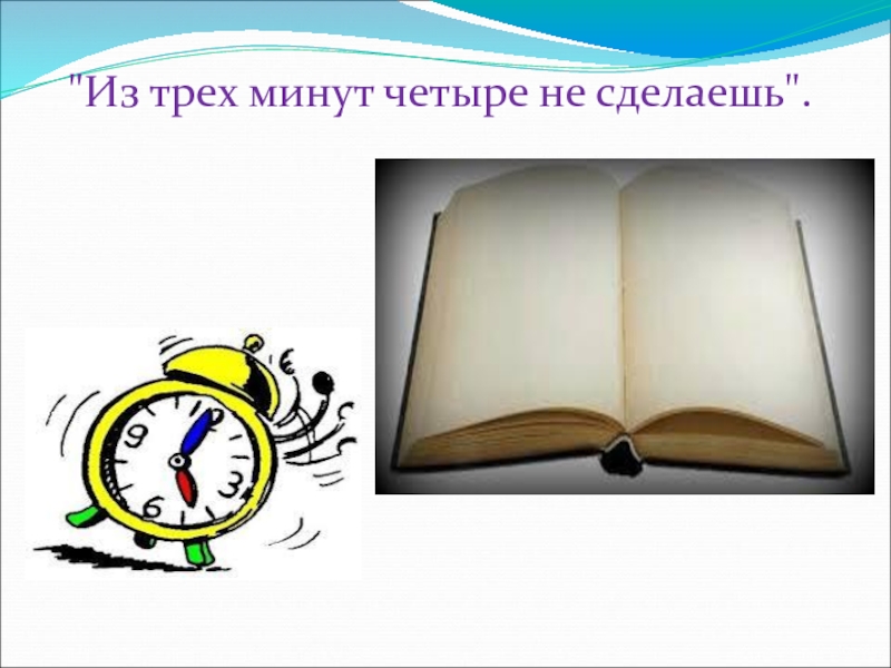 Слайд 11"Из трех минут четыре не сделаешь".