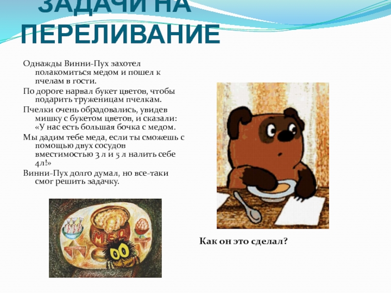 Как их получить? – Из 5-литрового сосуда отлить 3 л.