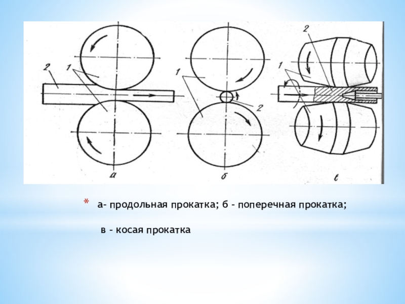 Слайд 5а– продольная прокатка; б – поперечная прокатка;