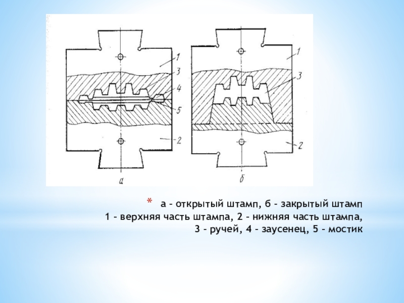 Слайд 13а – открытый штамп, б – закрытый штамп