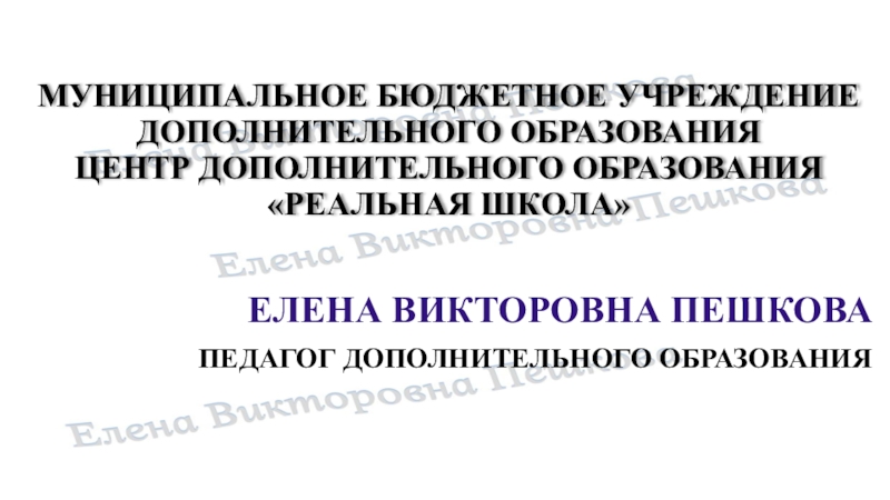 Муниципальное Бюджетное учреждение дополнительного образования Центр дополнительного образования «Реальная школа»Елена Викторовна Пешкова Педагог дополнительного образования