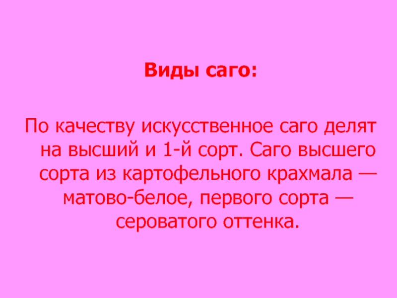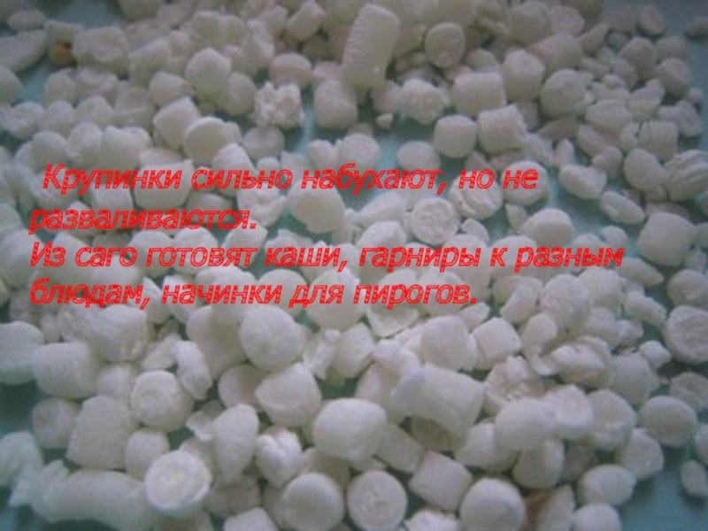 Слайд 13САГО- крупа, представляющая собой шарики крахмала, которые высушены и оклестеризованы.