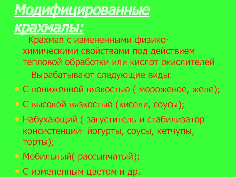 Набухающий ( загуститель и стабилизатор консистенции- йогурты, соусы, кетчупы, торты);