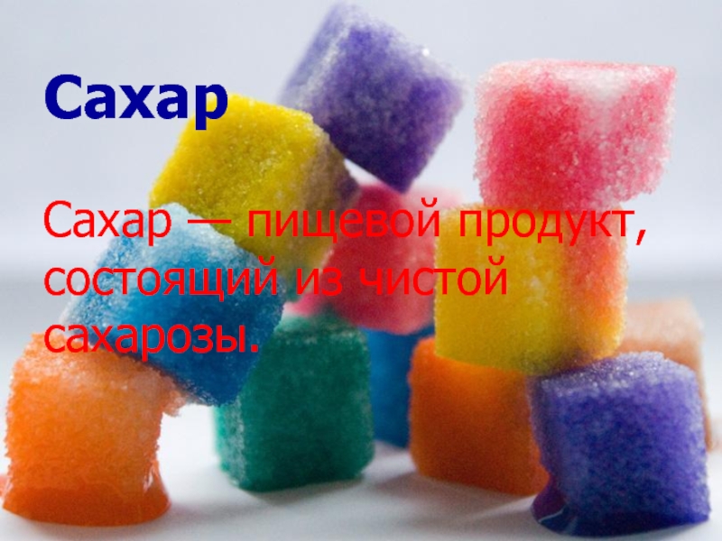 Сахар — пищевой продукт, состоящий из чистой сахарозы.