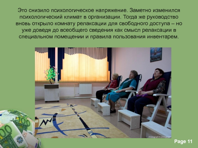 Слайд 11Это снизило психологическое напряжение. Заметно изменился психологический климат в организации. Тогда