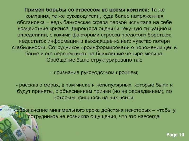Слайд 10Пример борьбы со стрессом во время кризиса: Та же компания, те же