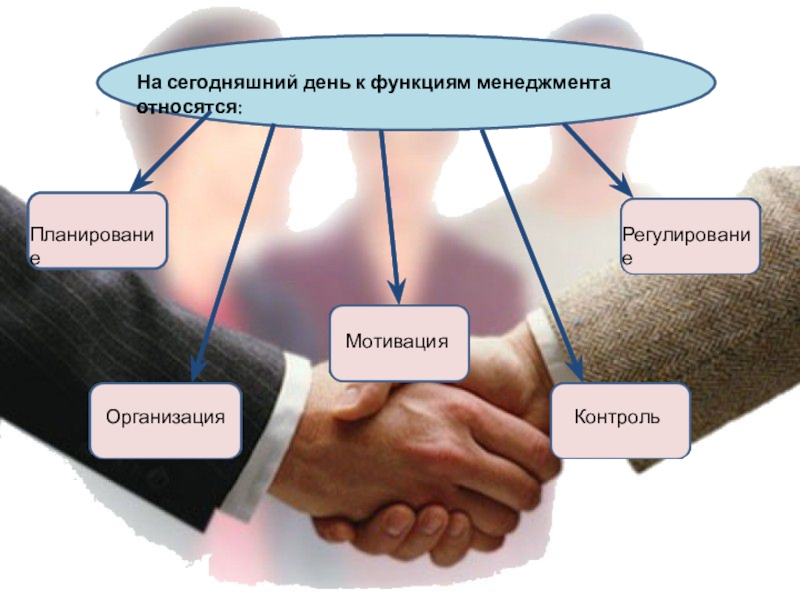 Слайд 4На сегодняшний день к функциям менеджмента относятся: