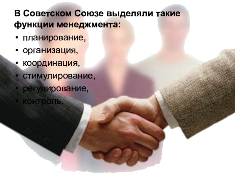 Слайд 5В Советском Союзе выделяли такие функции менеджмента: