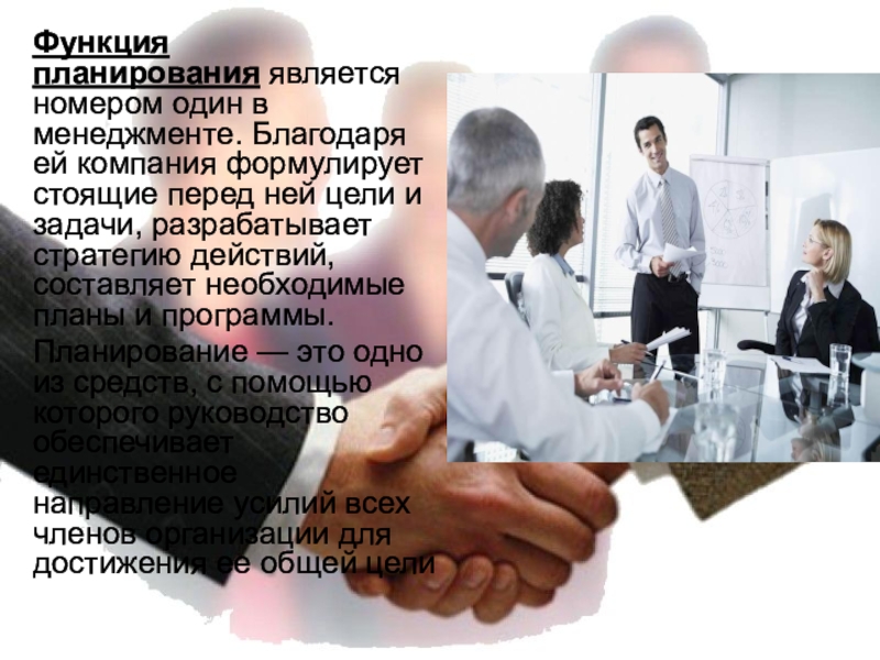 Слайд 6Функция планирования является номером один в менеджменте. Благодаря ей компания формулирует стоящие перед