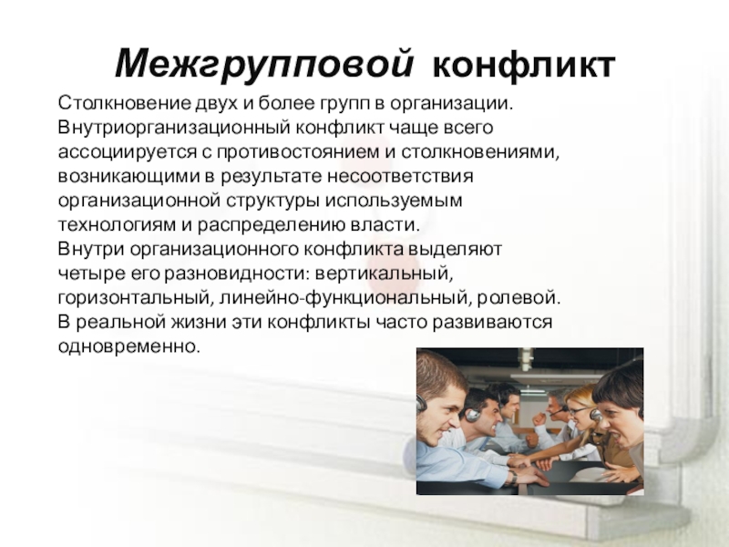 Столкновение двух и более групп в организации. Внутриорганизационный конфликт