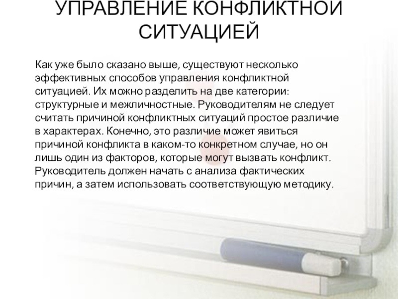 Различают структурные (организационные) и межличностные способы управления конфликтами