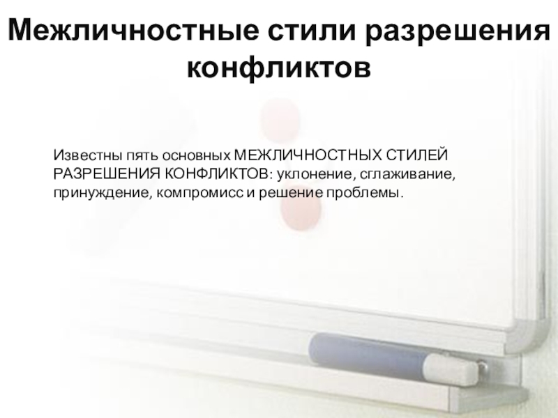 Известны пять основных МЕЖЛИЧНОСТНЫХ СТИЛЕЙ РАЗРЕШЕНИЯ КОНФЛИКТОВ: уклонение,