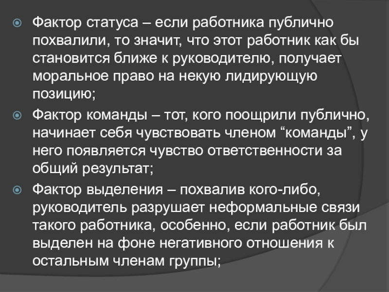 и в 10% случаев – к похвале (грамоте, благодарности и проч.) перед лицом коллег.