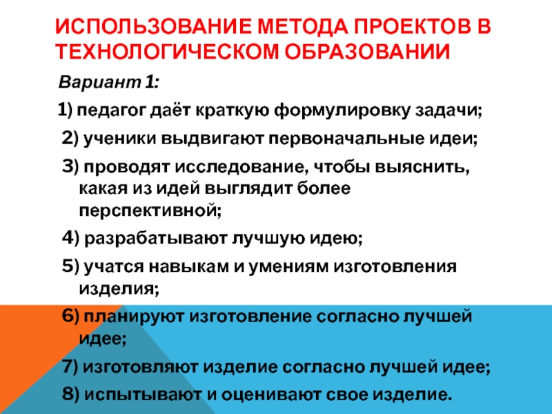 Слайд 13ИСПОЛЬЗОВАНИЕ МЕТОДА ПРОЕКТОВ В ТЕХНОЛОГИЧЕСКОМ ОБРАЗОВАНИИ