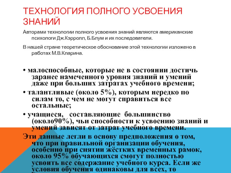 Авторами технологии полного усвоения знаний являются американские психологи