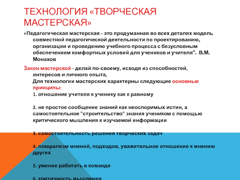 Слайд 28ТЕХНОЛОГИЯ «ТВОРЧЕСКАЯ МАСТЕРСКАЯ»
