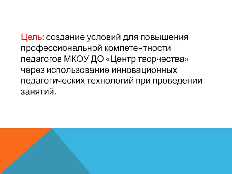 Слайд 2Цель: создание условий для повышения профессиональной компетентности педагогов МКОУ ДО «Центр