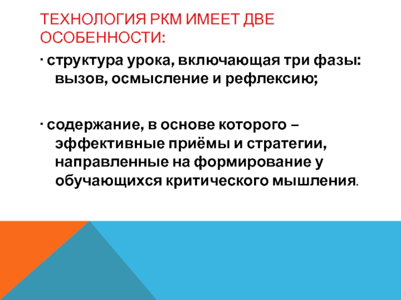 · содержание, в основе которого – эффективные приёмы и стратегии, направленные на формирование у обучающихся критического мышления.