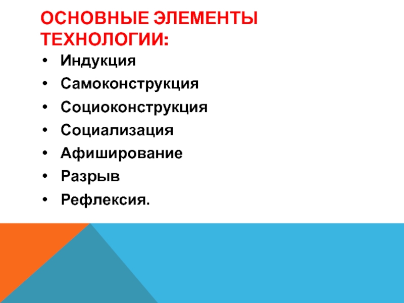 Слайд 29ОСНОВНЫЕ ЭЛЕМЕНТЫ ТЕХНОЛОГИИ: