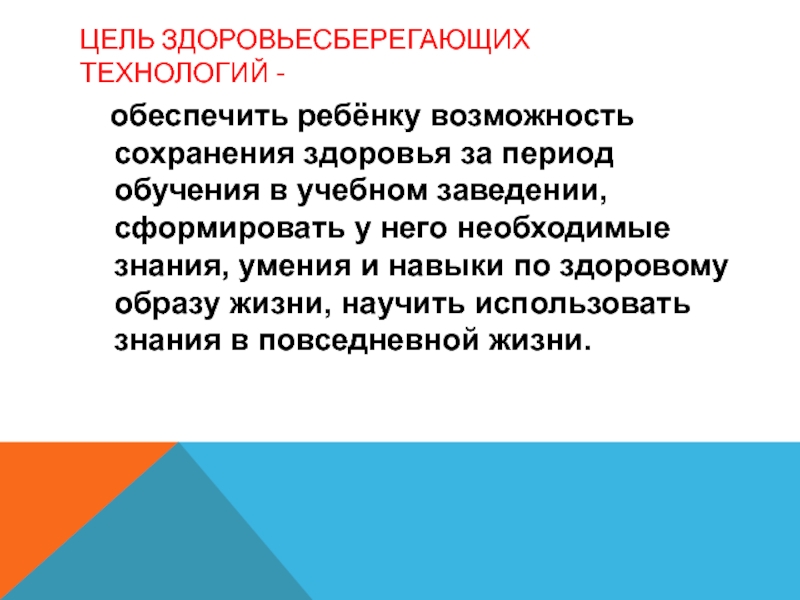 Слайд 8ЦЕЛЬ ЗДОРОВЬЕСБЕРЕГАЮЩИХ ТЕХНОЛОГИЙ -